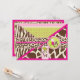 Vilden och den roliga apan som hänger på djungelvine och en vildnappar med sebra, giraffet, leoparden och cheetahpatchworktryck med snöre 3D-look, klipper rosett bandbaby showerinbjudan. Färger är pinks, gröntar och bryner.