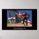 En marin gevär vid en offentlig ceremoni och en stor amerikansk flagga. Ord "semper fi" på botten, latinuttrycket förkortas från "semper fidelis", vilket betyder "alltid trogen". Mycket färgad och patriotisk