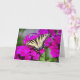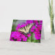 En vacker gul fjäril pryder livfulla blomblommor på detta tomma gratulationskort för alla tillfällen.