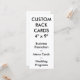 Tomma personliger för RACK-kort med anpassningsbar tryckt på 9 x 4 tum. Utforma, skapa, skapa egna rackkort, menykort, bröllopsprogram och kampanjstöd. Foto, bild, text, logotyp med hög kvalitet, utfall i fullt, utskrift i fullt på båda sidor av rackkortet. 4 tum x 9 tum (porträtt) eller 9 tum x 4 tum (liggande) 100 lb. vitt kort lagrar med glans avslutat. Bästa för företag och projekt i marknadsföring och marknadsföring, för menyer och bröllopsprogram.