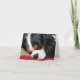 Detta är ett tomt noterar kortet som presenterar ett original, fotograferar av Spaniel för härlig tri-färg en stolt kung Charles och att sova på hans färgrika görade randig filt.