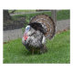 "Tom Turkey, Painterly" av Catherine Sherman. En manlig kalkon visningar sitt dramatiska fall och mycket intressanta utseende i en penna vid en barnzoo. Den vild kalkonen (Meleagris gallopavo) är endemisk i Nordamerika, men har införts över hela världen och hålls ofta som fjäderfä på gårdar. och de är populära som livsmedel och för jakt. Manliga kalkoner, som också kallas för tomor eller gåsgrillar, är stora, runda fåglar med starka muskler och färgstarka plommon. Honorna är mindre och saknar många av hanens ansiktsdrag. Det är lättare för hanarna att känna igen sig i svan fläkt, "skägg" av tunna fjädrar på bröstet och färgstarka ansiktsslag, inklusive en snood, som är en lång spetsfundig bihang över en manlig näsa. Vildens kalkonvupplopp har många olika nyanser av färg och irnedbrytning. Även om kalkoner vanligtvis ses som föda på marken är de bra flugor och rostar i träd nattetid.