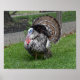 "Tom Turkey, Painterly" av Catherine Sherman. En manlig kalkon visningar sitt dramatiska fall och mycket intressanta utseende i en penna vid en barnzoo. Den vild kalkonen (Meleagris gallopavo) är endemisk i Nordamerika, men har införts över hela världen och hålls ofta som fjäderfä på gårdar. och de är populära som livsmedel och för jakt. Manliga kalkoner, som också kallas för tomor eller gåsgrillar, är stora, runda fåglar med starka muskler och färgstarka plommon. Honorna är mindre och saknar många av hanens ansiktsdrag. Det är lättare för hanarna att känna igen sig i svan fläkt, "skägg" av tunna fjädrar på bröstet och färgstarka ansiktsslag, inklusive en snood, som är en lång spetsfundig bihang över en manlig näsa. Vildens kalkonvupplopp har många olika nyanser av färg och irnedbrytning. Även om kalkoner vanligtvis ses som föda på marken är de bra flugor och rostar i träd nattetid.