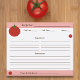 Ett recept i röda toner med illustrationer av tomater: perfekt till dina favoritrecept (sås, juice, gazpacho, pizzasås, spaghettsås) med vänner och familj. Du kan också använda det vid en möhippa!