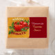 Färgfull, vibrerande konserveringsmärke med tomater som beretts från vintage av Fransk för burk-etiketter