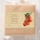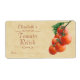En illustration av ett gäng röda tomater med grönt löv, på en beige bakgrund med text i rostfri färgad, som är gjord av en digital målning och ett foto. Etiketten är avsedd för konservframställning eller buteljering av hemmabruk, skorstenar, ketchup och konserver. Du kan lämna datumutrymmet till skriva i eller ändra till det datum då produkten tillverkades.