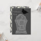 Denna Halloweenfest-inbjudan har en kuslig känsla med en illustration av en gravsten eller huvudsten med en spindel och spindelnät och en svart kråka placerad ovanpå. Gravstenen är redo att anpassas med alla dina festdetaljer. Baksidan har ett koordinerande mönster av gravstenar och kusliga spöken.