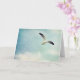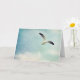 Överför en handskriven hälsning eller tackkortet på detta anpassadekort som presenterar en härlig fiskmås som soaring i en blå himmel. Image är en fotografera med en tillfogad kanfasstruktur.