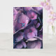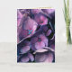 Upp slut beskåda av den livliga purpurfärgade vanlig hortensiablommar samla i en klunga med blått centrerar. Card tom insida.