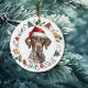 Här är en vacker personlig för alla som kärlek en tysk Shorthar Pointer hund. Framsidan har en vattenfärgsvisare med röd och vit tomtehatt. Bilden är inramad i en färglös krans som består av olika Helgdag, inklusive snögubbe, klockor, candy cane, strumpor, holly och mycket mer! Baksidan av dekoratet har samma utandningsbild med anpassningsbarnas text i grönt och rött.
