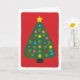 Ett modernt exempel på ett Julgran med multifärgad ljus och en gult stjärna på röd bakgrund. Den pappra digitala sammansättningen av handmålad akryl. Illustration färg innehåller rött, grönt, blått, gult, lila och orange. INSIDE: Tom