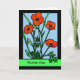 Tomt pappert hälsningkort för tack med en illustration av röd vallmoinsida en svart ram. Skisserar lik målat glass för illustrationlooks med svarten. Ljusa röda vallmor med mörk - gröna stems och löv. Tända - blå himmelbakgrund. Vallmoinslagartighet av Openclipart. Konst avbildar, och versen tar copyrightt på ©Shoaff Ballanger studior.