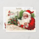 Vintage-julillustration av Jultomten vid sitt skrivbord och läsa allt brev som skickats till honom.