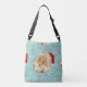 Söta Vintagen Santa-konstruktionen av en Jolly Jultomten mot en turkospass med pepparmynningar och candy cane.