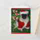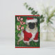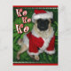 Vår Santa Pug tittar vasst i sitt röda Jultomten kostym på gröntens bakgrund med snöflingor och tass avtryck. Santa Tassar (även skrivet Rocko) önskemål, du God jul och Gott nytt år. Ho-Ho-Ho! Perfekt för hund och pug älskare.