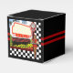 Fyrkantig, svart, klassisk stil-ruta med en bild, framtill och baktill, av ett 50-sekunderstecken för anpassade, en röd middag och en 50-sekundersserver för vintage på ett svart kontrollbord. Två röda rand omger rutan. Se matchningsinbjudan, "50s Retro Middag"-inbjudan, "50s Retro Middag"-kort, kuvert, favoritpåse, favorittagg, etikett och klistermärken. Visa hela favoritrutesamlingen för femtio dagar i SPECIELLA TUUCHES | Avsnittet Party favors.