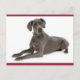 Great dane härskar! Det här charmerande vykortet har porträtt i en ung grått Great dane-valpen-hund som markerats mot en grå vit bakgrund. Den här söta valpen är redo att hjälpa dig att skicka leenden till familj, vänner eller kunder. Hund-vykort är ett ekonomiskt alternativ till storleka hälsningskort för fullt när du vill skicka en snabbanteckning till familj och vänner. Brevkort i hälsning är underbara för... Personliga anteckningar Hund rädding organisationer Hälsning - Tack, miss you, Förlåt, osv. Affärskorrespondens Gift-höljen med speciella meddelanden Meddelanden - nya hem, bröllop, studenten Några andra Great dane-produkter och presenter som du kan ha nytta av...