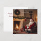 Ett personligt julkort med Tomten sittande i ett vardagsrum med ett glas varm mjölk vid brasan. Denna design skapades av Debbie Quick från Debs Creative Images: www.debscreativeimages.com