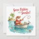 Fira högtiderna med en stänk av kul på det här julaftonskortet med Tomten som fiskar! Med tomten Klaus som slappnar av vid vattnet med fiskespö, festlig fiskeredskapsask och julsaker runt bryggan - den här akvarellscenen blandar mysig julstämning med den fridfulla glädjen av fiske. Perfekt för fiskare, friluftsentusiaster eller någon som älskar en lugn och glad jul vid sjön eller havet.
