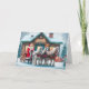 Tomte framför verkstad med julhästar helgkort