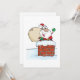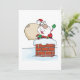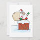 Tomte på toppen av en skorsten med snö runt honom. Denna design ser riktigt effektiv ut på dessa inbjudningar