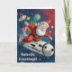 Sälsongsstämning med Tomte i rymden på detta julkort där Tomten tar med sig julglädje i raketfart till nya höjder.