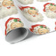 Bedårande, vintage tomte ansikte som sportar sitt fulla vita, ludna skägg och bär sin traditionella röda pälsmössa. Han har en mycket glad leende i ansiktet och rosiga röda kinder.