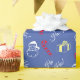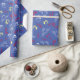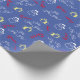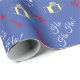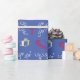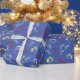 Söt och festlig Tomte Karamellstavmönster Blå Jul presentpapper. Blå bakgrund med "Ho Ho Ho!", Tomte, present, karamellstavmönster.
