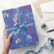 Tomte Karamellstavmönster Blå Jul Presentpapper