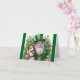 Sött foto av en tomte som håller en hund, finns på detta välkomstkort för St. Patrick's Day. Inuti kortet står "Grattis på St. Patrick's Day till dig och dina"! Ett sött kort att skicka till familj och vänner på den irländska högtiden.