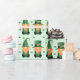 Detta är en rolig illustration av trädgårdstomtar utformade för St. Patricks dag. De har fyrklöver och ett ljust orange skägg.
