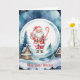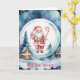 Den här charmiga julkortet visar en söt jultomte med pepparkaksgodis och en godisstav, inuti en snöglob med en snöig julby i bakgrunden. Greetingsen, som du kan anpassa så länge den passar platsen, lyder: "Må dina önskningar" på framsidan och "Slå in på julen och resten av året" på insidan. Det har också en platshållare för ditt efternamn och sedan alla förnamn i din familj. Detta kort ger en touch av fantasi till en traditionell julscen.