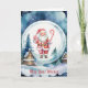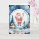 Den här charmiga julhälsningskortet har en söt jultomte, iförd pepparkaksgodis och en julstav, inuti en snöglob med en snöig julby i bakgrunden. Hälsningen, som du kan anpassa så länge den passar platsen, lyder: "Må dina önskningar" på framsidan och "Slå in på julen och resten av året" på insidan. Det har också en platshållare för ditt efternamn och sedan alla förnamn i din familj. Detta kort ger en touch av fantasi till en traditionell julscen.