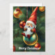 Den här festliga julkortet visar en bedårande tomte som sitter på en stor julgransprydnad som hänger från ett vackert dekorerat julgran. Den fantasifulla scenen är perfekt för julen, med sin lekfulla och magiska design som fångar julens väsen. Detta kort är idealiskt för alla som letar efter ett unikt och trendigt sätt att skicka julhälsningar, och erbjuder en fräsch twist på traditionella julbilder.
