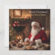 Ett personligt julkort som visar tomten sittande i ett vardagsrum med en vacker öppen spis och julgranar, äter kakan som barnen ställt fram. Designen är skapad av Debbie Quick från Debs Creative Images: www.debscreativeimages.com
