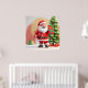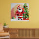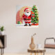 Tomten glatt hållande en gåva och omgiven av ett dekorerat julträd. Den festliga scenen illustrerar firande, glädje och julstämning.