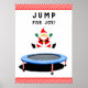 Juldekoration med jolly gamle Tomten som hoppar för glädje på en studsmatta.