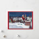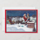 Tomte som levererar en stor hög med böcker julkort