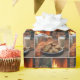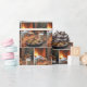 Tomtens hand i vit handske sträcker sig efter en kaka från en tallrik bredvid ett glas mjölk mot den varma glöden från en öppen spis