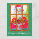 En söt och fantasifull bild av tomten som tänder menorahljusen pryder detta julkort.