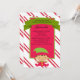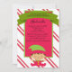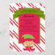 En julbabypojke är på väg!! Det finns en babypojke på väg!! Börja din fest med denna söta inbjudan till baby shower. Den har en vit bakgrund med röda godisrandiga ränder. I mitten finns en stor grön rektangel med en röd inuti den. Du anpassar den med din festinformation. Längst ner i mitten sitter en baby pojke med en alvhätta och altdräkt på. Längs toppen finns ett grönt band. Ta en titt på de andra designerna och produkter vi erbjuder. ©JW Illustrations