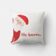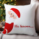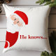 Fira den festliga årstiden med denna charmiga jultomte-kastkudde. Med en lekfull tomte som tittar ut med ett vetande leende och texten "Han vet..." i feta röda bokstäver, tillför denna kudde en touch av humor och värme till din juldekoration. Det klassiska röda och vita färgschemat ger en mysig julkänsla till alla rum. Perfekt för att lägga till en festlig touch i ditt vardagsrum eller som en underbar present till vänner och familj.