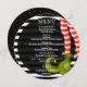Runda menyer med tomteben i randiga strumpor och gröna stövlar på svart och vita ränder och guldprickar och dina detaljer i chic vit bokstavsstil. Perfekt för en julfest, bröllopsreception, bröllopsprovdinner, årsdagsfirande eller någon speciell händelse med en sittande middag. Lätt att anpassa med din middagsmeny och detaljer. MASSA FÄRGER tillgängliga i vår butik.