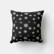 Tomtefar och Tomtemor kudde med röda och vita snöflingor i bakgrunden.