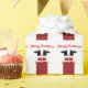 Jultomten uppåt och nedåt fastnade i skorsten med fötterna och texten ovanför honom "God jul".