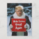 En humoristisk helgdag med en Donald Trump klädd i Santa kostym, med ett rött tecken som lyder: "Gör jul Underbar igen." Snöflingor faller runt honom, vilket ökar den festliga vinteratmosfären. Texten och uttrycket förmedlar en blandning av säsong-anda och en lätt nod till politiska slagord