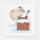 Tomten högst upp på en skorsten med snö kring honom. Den här designen ser ut att vara effektiv på dessa Pappra servetter