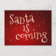 Börjar ditt barn bli ängsligt i springa fram till jul? När ett barn tro i Jultomten får veta att de inte kommer att få något Julklapp om de är stygga kan detta leda till oro, eftersom barnet blir oroat över att tomten inte kommer att ringa hemma hos dem. Det här vykortet från tomten kommer att underlätta dem. På vykortets framsida står budskapet "tomten kommer". På baksidan finns det en poststämpel från Nordpolen, och ni kan personalisera budskapet för ert eget barn och ert adress. Här står det: "Kära Susan, bara för att du ska veta att du har varit en någorlunda bra flicka i år, och att jag kommer med presenter den 25 december. Se till att du lämnar ut ett strumpor och sover i sängen tidigt vid jul Kväll. Jultomten". Se till att du byter "flicka" till "pojke" om ditt barn är en pojke, eller så kan du skriva om meddelandet helt om du så vill.