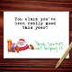 Ge helgdagarna lite sarkastisk glädje med det här roliga julkortet, "Du påstår att du har varit bra i år?" Tomten köper det inte." En grumpig, oimponerad tomttållande bredvid en stapel av presenter gör att perfekten matchar den här häxlinjen. Det här kortet är tomt för att du ska kunna lägga till ett eget personligt meddelande om du vill göra roligtar på vänner, medarbetare eller familj.