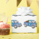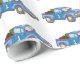 Tomten kör en gammal blå lastbil, lastbil ligger i fullt av gåvor